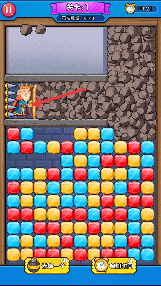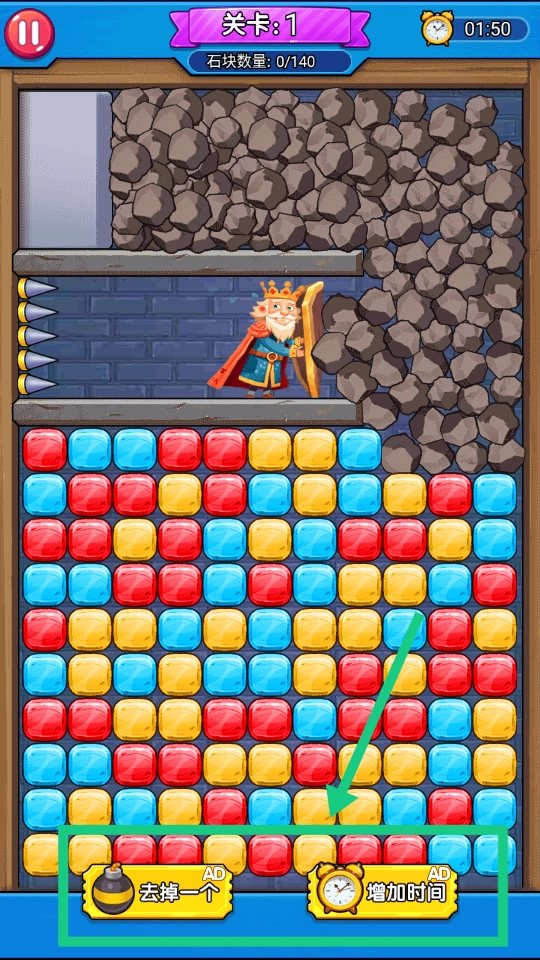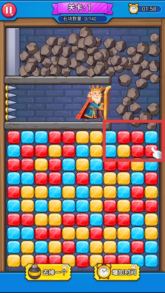 4、尽快完成消除,不要让国王被尖刺扎到。