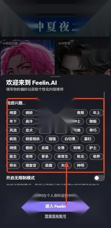 5、选择你感兴趣的标签,设置完成以后即可进入此软件。