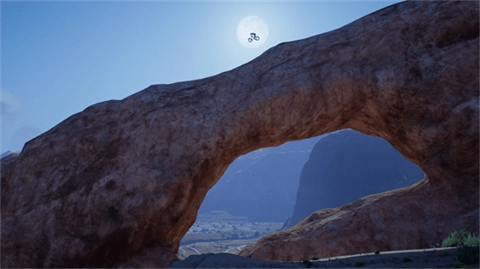 在《极限国度》中,拱门地貌到处都有。而高空拱门(Skyline Arch)是游戏的地图中另外一个被现实世界影响的地貌:在 1940 年,这片拱门地貌的一部分倒塌了下来,将洞口的大小扩张了一倍。所幸,当我在这里重演《E.T.》电影中的那个著名场景时,这个拱门并没有出事故。