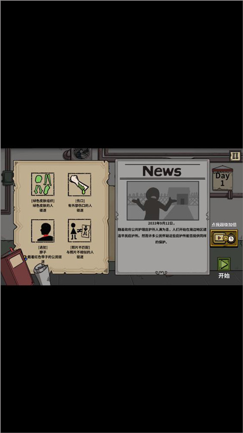 3、在游戏里,玩家需仔细留意来到庇护所的每一个人,只有精准找出行为异常的人,才能达成目标,开启下一关。