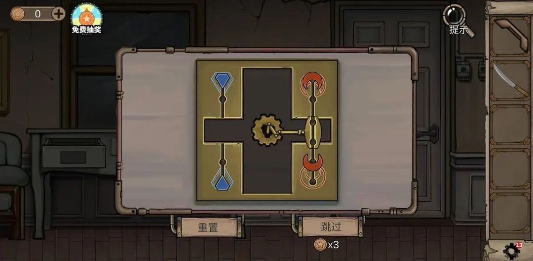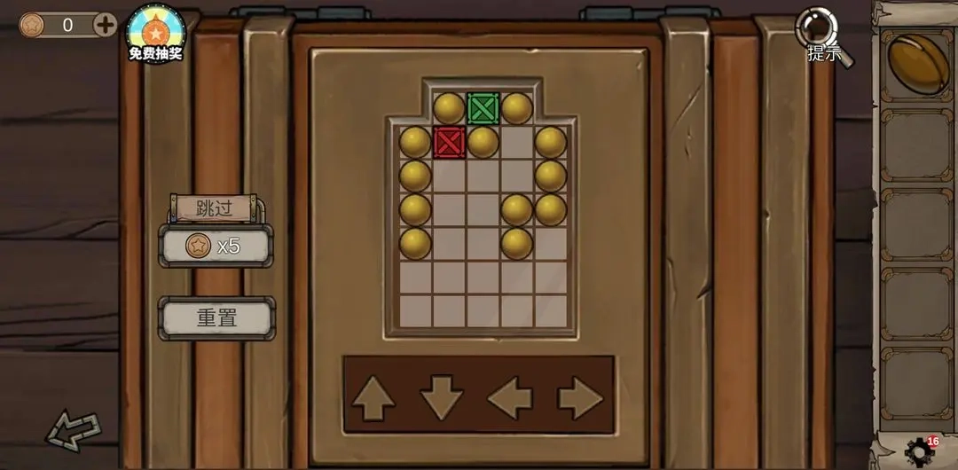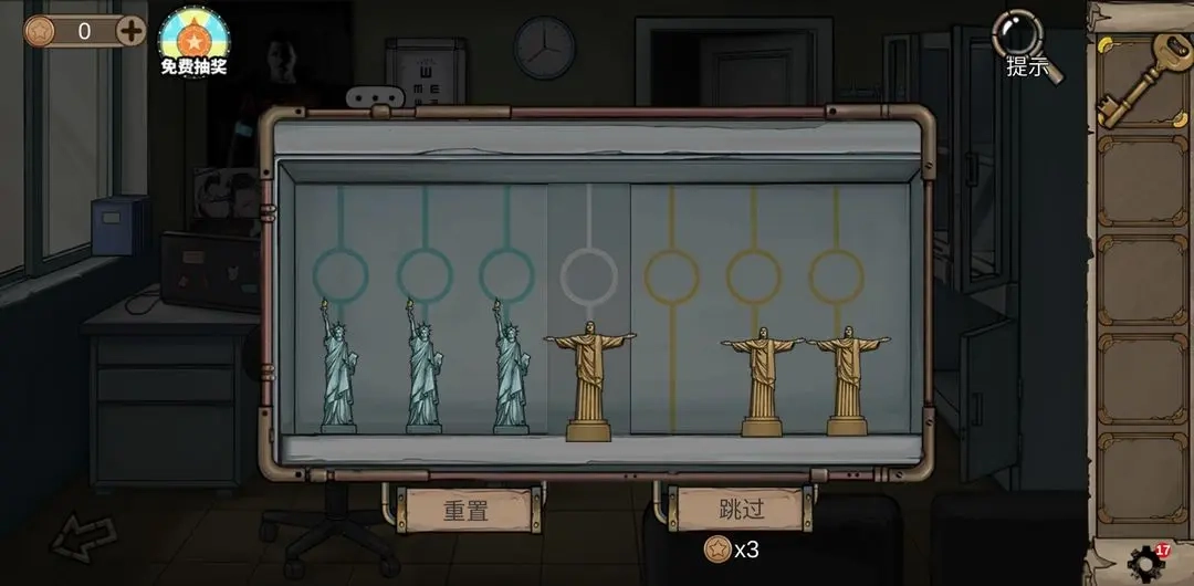 2.门上的机关按照颜色归位即可,四个角的小块是可以拖动的,一个一个运输不难解开。门开后得到钥匙