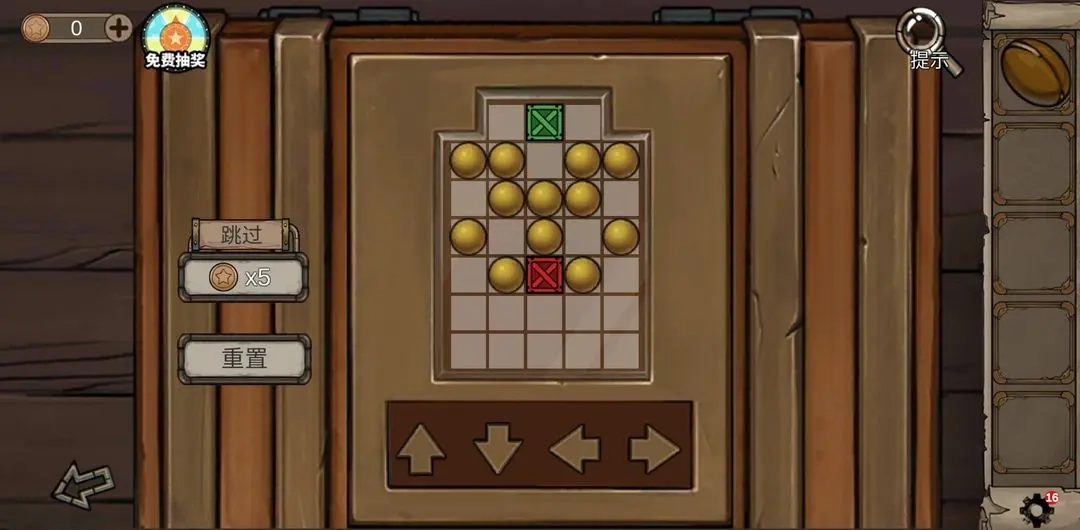 4.办公室右边柜子上层有个小游戏,同样也是不要贪多,隔着跳棋,青蛙过河,不难拿到紫光灯。