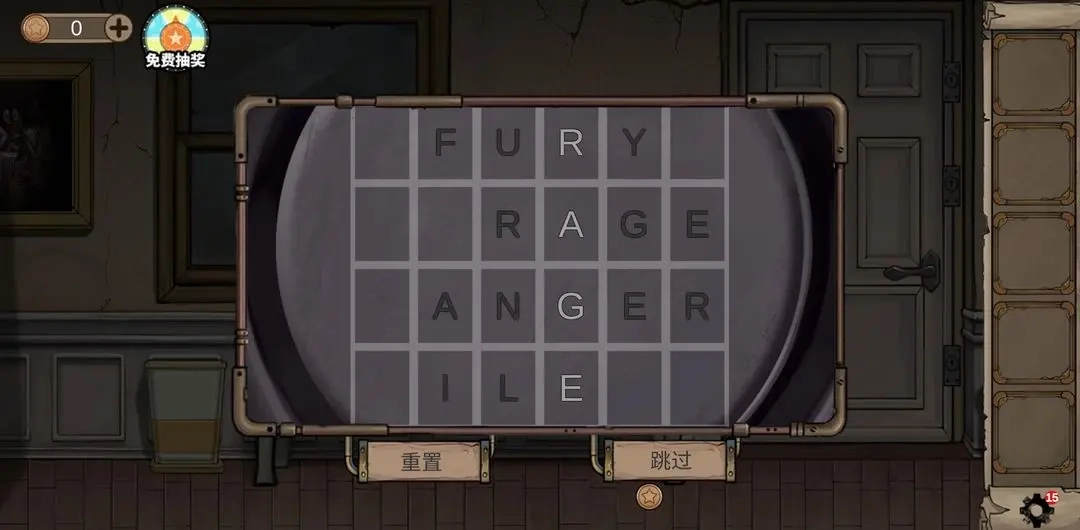2.拼完单词后有一个拼图,拼成钥匙形状即可(同样差钥匙柄右边小块,为截图没拼完),拿到钥匙可以开上下的锁。