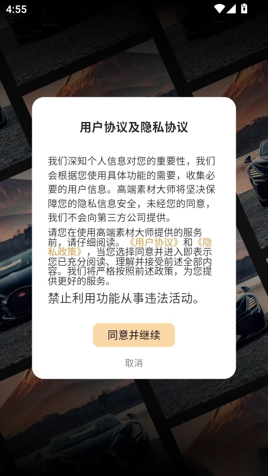 1.首先打开软件点击“同意并继续”按钮进入界面