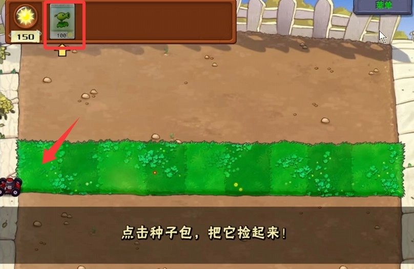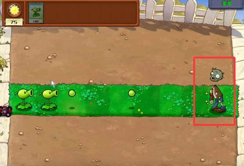2、将豌豆射手等植物卡牌拖拽至草坪网格,根据僵尸行进路线合理布置火力防线。