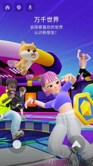 2. 紧接着,我们便会踏入主题公园内部。在界面左下角,有一个虚拟摇杆,它的作用是操控人物并使其移动;而界面下方的输入栏,则是用于与其他用户展开交流。除此之外,我们还能够通过手势的形式和他人沟通。