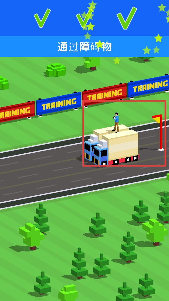 3、点击屏幕操控角色在卡车上站起,顺利通过障碍物,完成关卡。