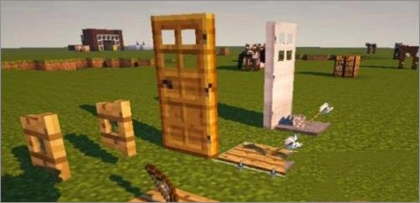 1. 在门的两面直接放置压力板,就能制作出简易的自动感应门。每当有人走到压力板上,门便会自动开启。
