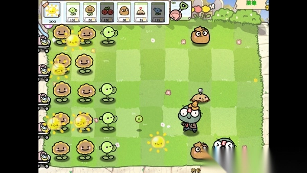 5、游戏画风采用了Q萌的幼儿园画风,植物和僵尸形象都得到了萌化,僵尸被击倒后还有掉眼泪的动画;