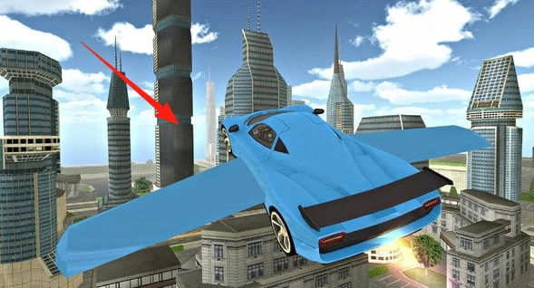 1. 玩法机制为操控带有机翼的蓝色飞行汽车,于城市上空翱翔,躲避高楼,借助倾斜、转向等操作,达成空中驾驶挑战。