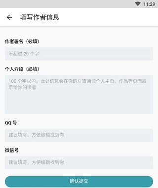 3、在申请的填写内容里,署上自己的笔名、个人介绍及联系方式。