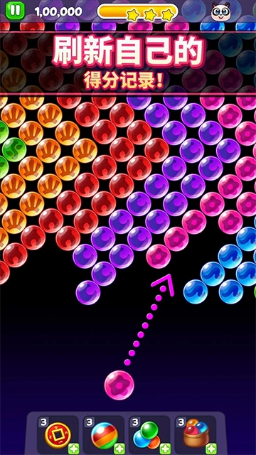 3、熊猫泡泡龙正版游戏中有许多可供玩家选择的物品,例如:瞄准线,五颜六色的气泡等等。灵活使用这些工具,不但可以让你更容易通过,也可以得到高分。