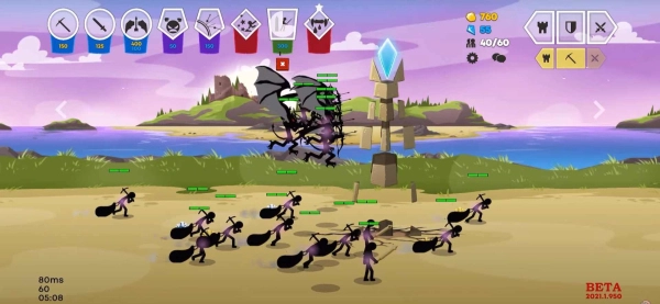 3.控制每个火柴人开采黄金,排兵布阵,防守城堡。