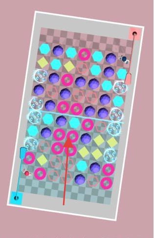 2、通过滑动、点击等操作,移动角色或元素,利用镜像机制,让元素按规律排列、消除。