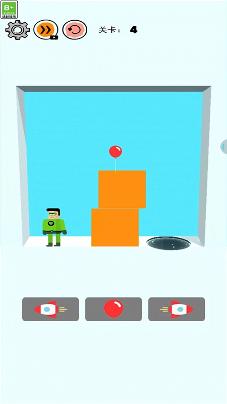 1. 在关卡中多尝试并总结错误,牢记各类道具的效果,例如气球能够悬挂多长时间,火箭的推力具体有多大。