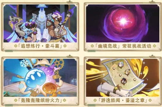 「轰隆轰隆缤纷火力」「追想练行?豪斗篇」等阶段性活动,以及武器培养材料双倍活动和新增绘想游迹关卡(雷电将军、申鹤),满足玩家不同的游戏需求。