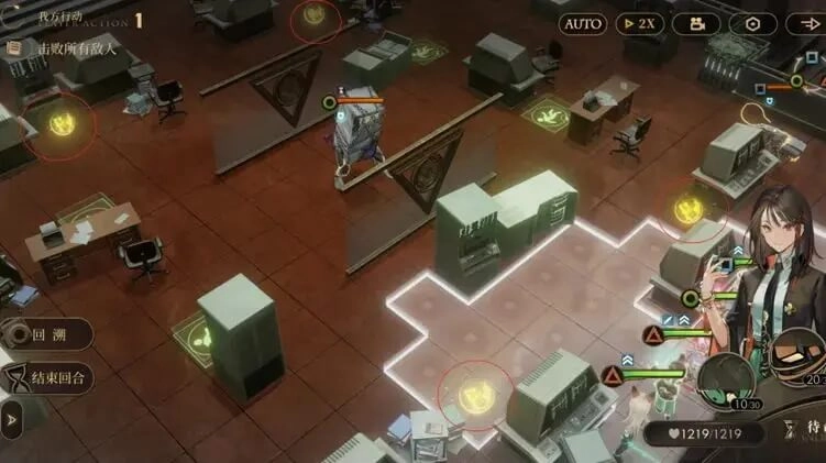 M214关卡需要我们把地图中央的这个掩体给彻底炸掉后即可,不过这个掩体本身有2点耐久,所以需要炸2次,大家注意分配好角色的回合。(例如用格蕾茜就是第2回合和第5回合分别炸一次即可炸掉)