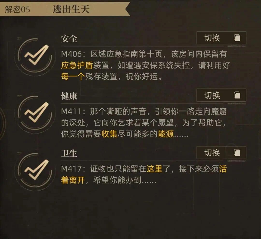 在完成每一章的3个解密后,我们可以领取到160“黑胶信息数据”的奖励,所以有机会还是可以先行把这个解密都给完成了。