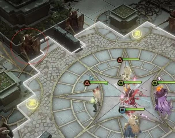 M310关卡需要我们把上图中位于左侧的这个雕像给炸掉即可,但是大家需要注意,这个雕像在我方角色靠近到它的2圈范围内时会触发其变身为敌人的效果,所以在炸掉前可不要触发了其变身的效果。