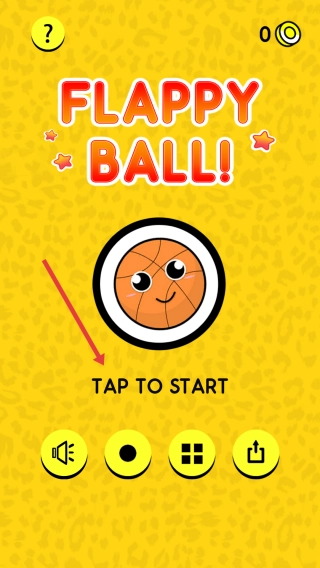 1. 启动界面:设有“TAPTOSTART”按钮,背景为黄色,搭配篮球图标,并配备音效等功能按键。