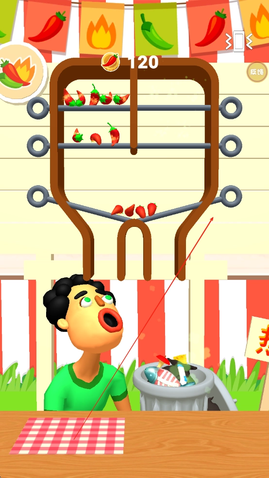 2、当行人表现出犹豫时,可使用喇叭道具大声吆喝,或派出萌宠吸引注意力,成功让行人吃下辣椒后,收集其辣度反应产生的“欢乐值”。