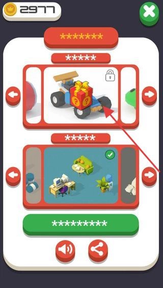 2、进入奖励界面,用金币(2977)解锁车辆、场景,点绿色按钮确认,获取新内容,丰富体验。