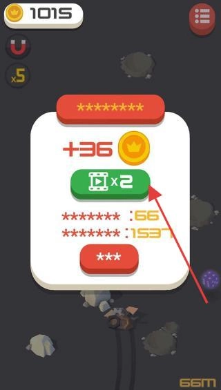 3、关卡结束后,领+36金币奖励,可看广告×2翻倍,点红色按钮继续,积累金币(1015)升级。