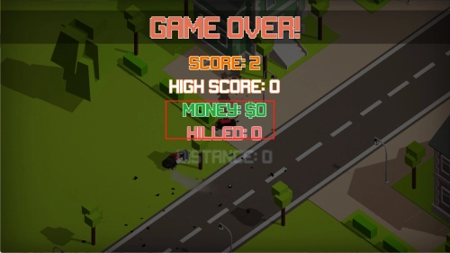 3、游戏失败界面会统计得分、击杀等数据,红框标注的金钱$0提示需更高效收集金币,为下次挑战做准备。