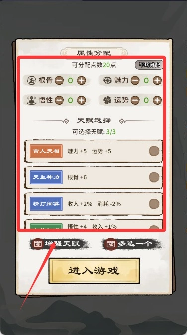 2、选择好角色后为角色分配好属性和天赋。