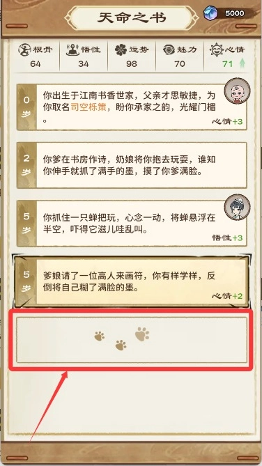 3、命运事件贯穿游戏全程,从奇遇、试炼到天机预示,变化莫测的局势促使人不断调整策略,应对挑战。