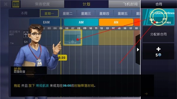 2、经营机场的第一步就是需要签订各种合同,玩家可以点击合同和航班公司签订合同。