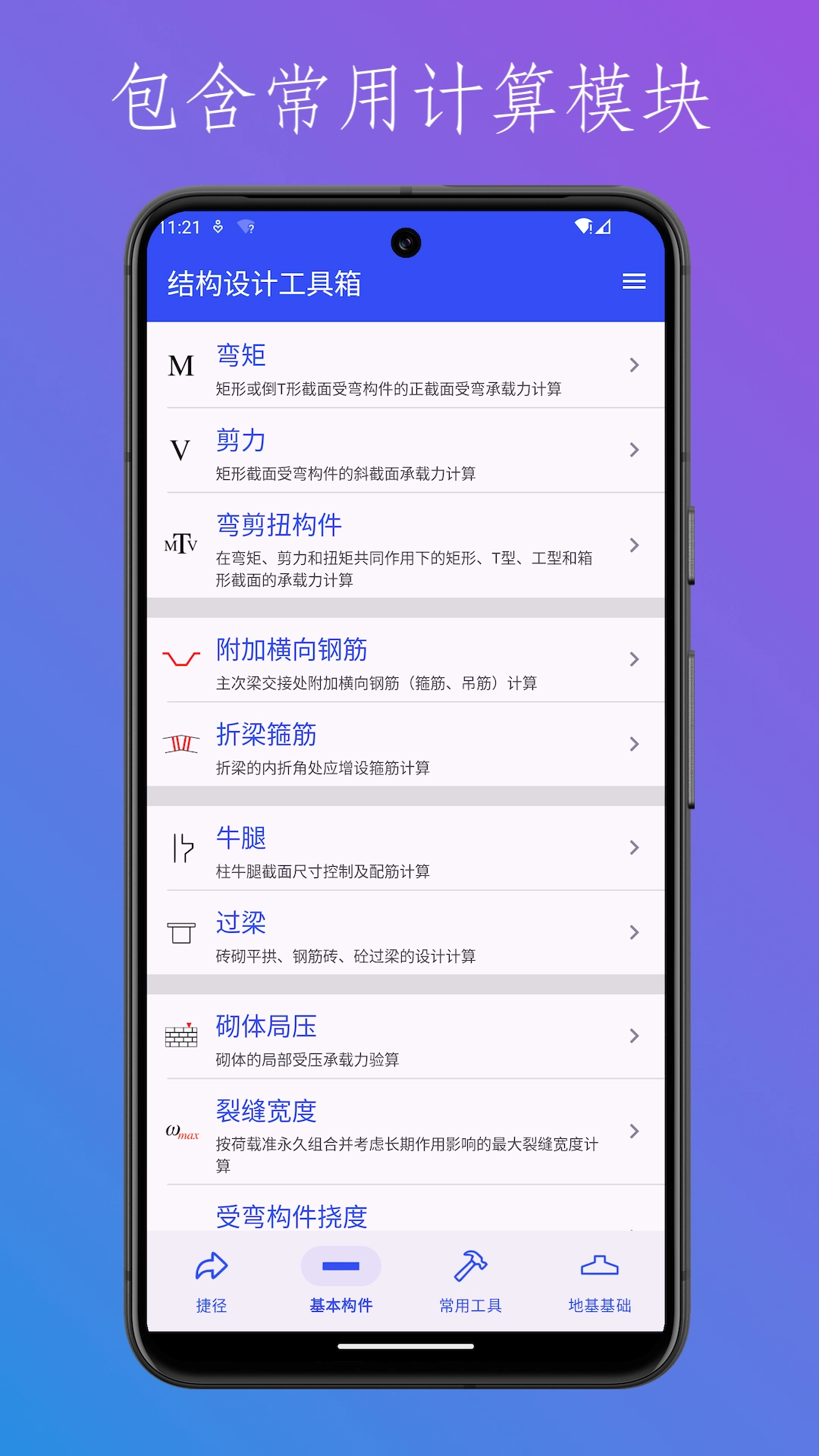 结构设计工具箱App,堪称建筑结构设计领域的必备神器。这款App内工具丰富多样,涵盖防震缝、抗震等级、钢筋选用表、最小配筋率、荷载基本组合、内插值等等。重点是,所有这些多样化的工具统统免费使用,而且操作极为简便。它针对所有参数设置,都预设了合理的默认值,极大地方便了大家使用。别犹豫啦,赶紧用起来!