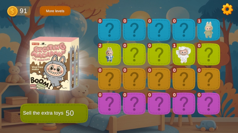 游戏的核心目标是收集全系列原创Labubu玩具,这意味着您需要不断开箱,直到集齐所有普通款和稀有款。