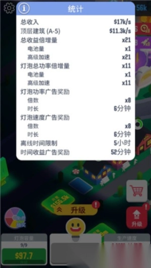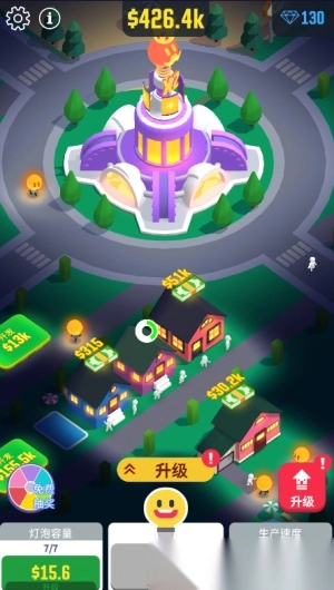 3.灯泡容量:就是没有新的建筑增多,城市里面能够容纳灯泡的数量,提升的数量越多,在地图上走动的小人就越多,那就会更加有趣热闹。