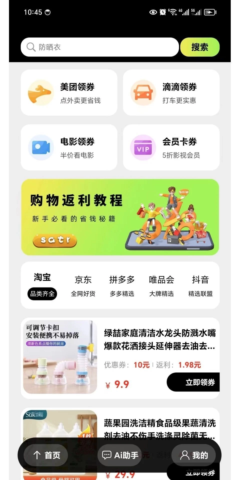 2、通过与各大电商平台合作,提供海量的优惠券和返利服务;
