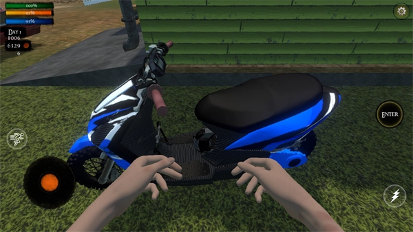 4、骑上摩托车后可以在里面点击右边的油门进行移动,左边的选项可以操控方向;