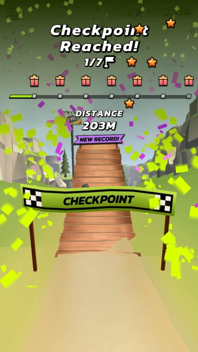 4、能对车轮进行升级,通过增加惯性行驶更远距离,增强玩家对游戏的掌控感与成长感。