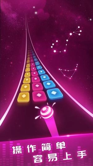 1. 通过点击、长按和滑动等简单手势操作小球,精准匹配音乐节拍通过障碍物和机关。