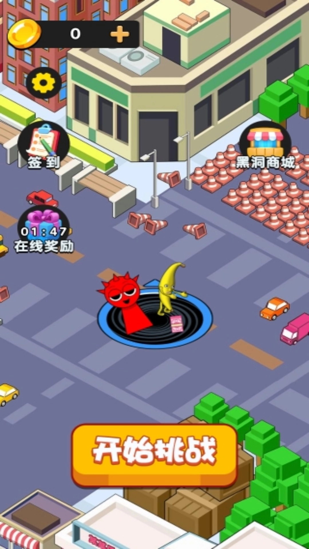 1、玩家划动屏幕移动黑洞,吞噬场景中的物品,使黑洞逐渐变大变强。