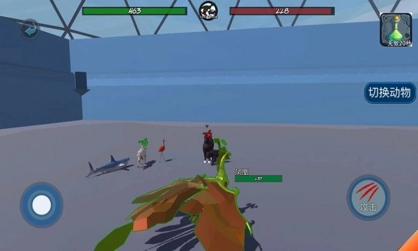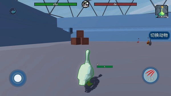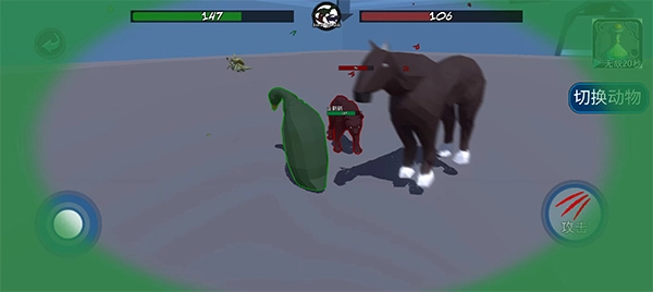 3、了解了以上内容,接着点击“开始战斗”,游戏挑战模式为闯关制,游戏中玩家可通过左侧的虚拟摇杆进行移动,并配合攻击按钮来攻击对方,期间你可以自由切换动物,游戏规则为三局两胜。