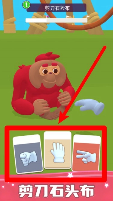 3. 当遭遇猩猩发起的挑战,需参与剪刀石头布游戏,挑选恰当的手势来应对对方,只要赢得胜利,就能进入下一阶段。