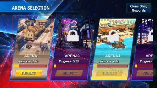 2、在关卡选择界面浏览不同难度的竞技场,了解每个区域的特色挑战内容。