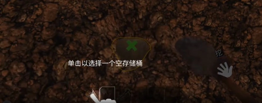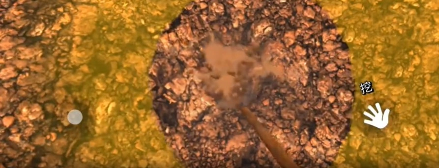 2、随后掏出铲子进行挖掘,直到矿石整个轮廓出现,我们就可以拿出桶将其装起来。