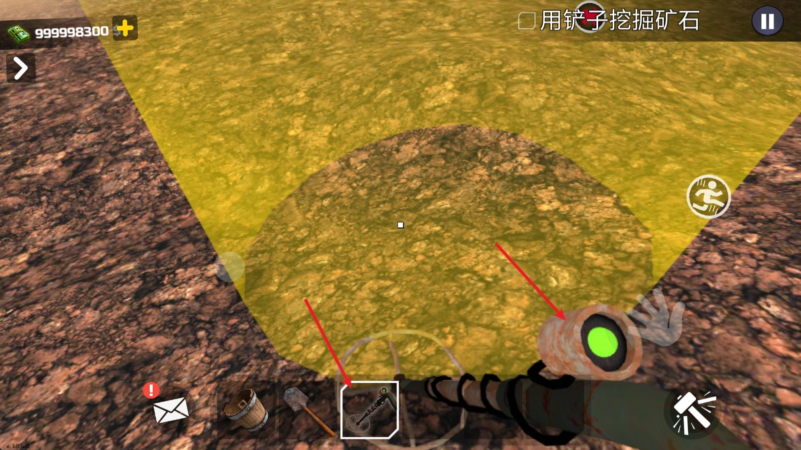 1. 进入游戏之后,我们第一步是拿出探测仪,在周围探寻矿源。一旦探测仪上的绿灯开始闪烁,就意味着附近存在矿。