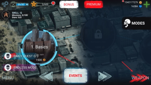 1. 在主界面点击“CHOOSE WEAPON”,进入武器购买页面。