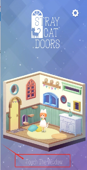 1、点屏幕任意位置开始游戏,左上角猫窗是logo,右上角齿轮是设置。