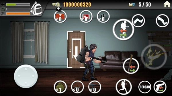 4、进入游戏后左边控制角色的移动,右边控制开火和切换武器。
