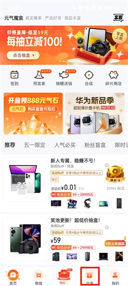 1、首先打开进入到软件首页,在首页右下方找到仓库,进入到提货仓库;