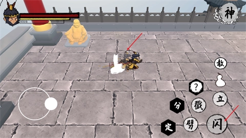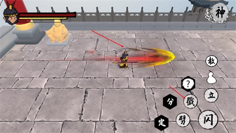 2、“劈”键为最普通的攻击,并且和佛像以及宝箱交互都是通过此键。