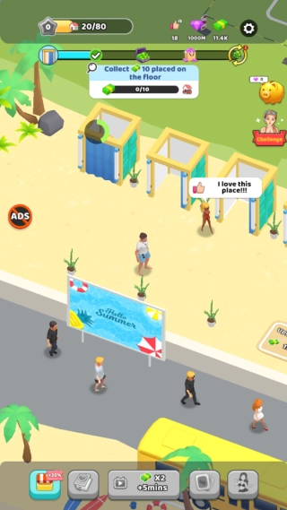 3.随着游客数量的增加,玩家可以解锁新的海滩区域,扩展经营范围,最终成为真正的“荒地亿万富翁”。